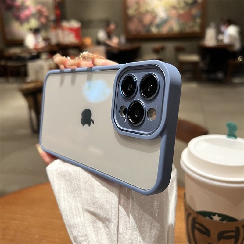 fully wrapped metal lens protection transparent phone case for iphone 14 /13 /12 shockproof bumper back Cover