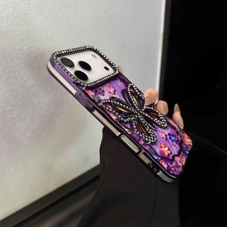 3D Rhinestone Butterfly Case – Sparkling Floral Bling Cover for iPhone