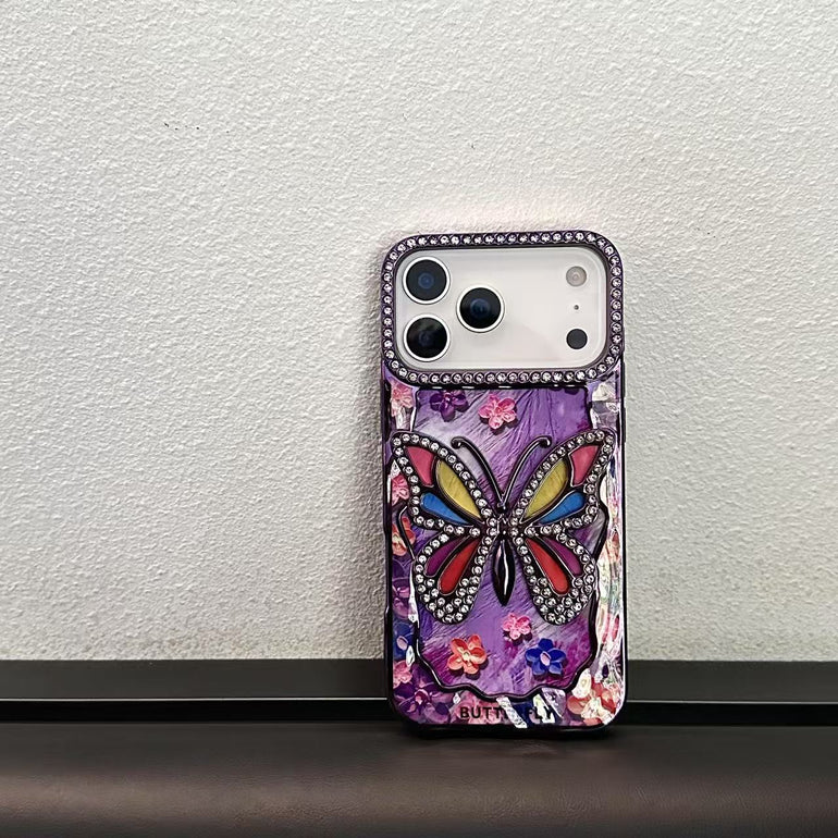 Shine bright with butterflies 🦋✨ This glamorous 3D rhinestone case features a jeweled butterfly centerpiece, floral details, and shimmering crystal borders for the ultimate bling effect. Perfect for making a statement while keeping your iPhone safe.