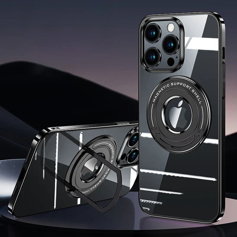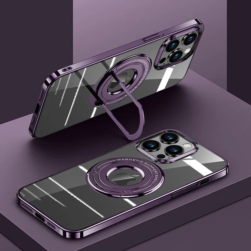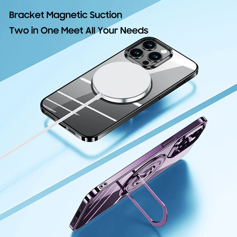 iPhone MagSafe Series | Electroplated Transparent Folding Stand Mobile Phone Case
