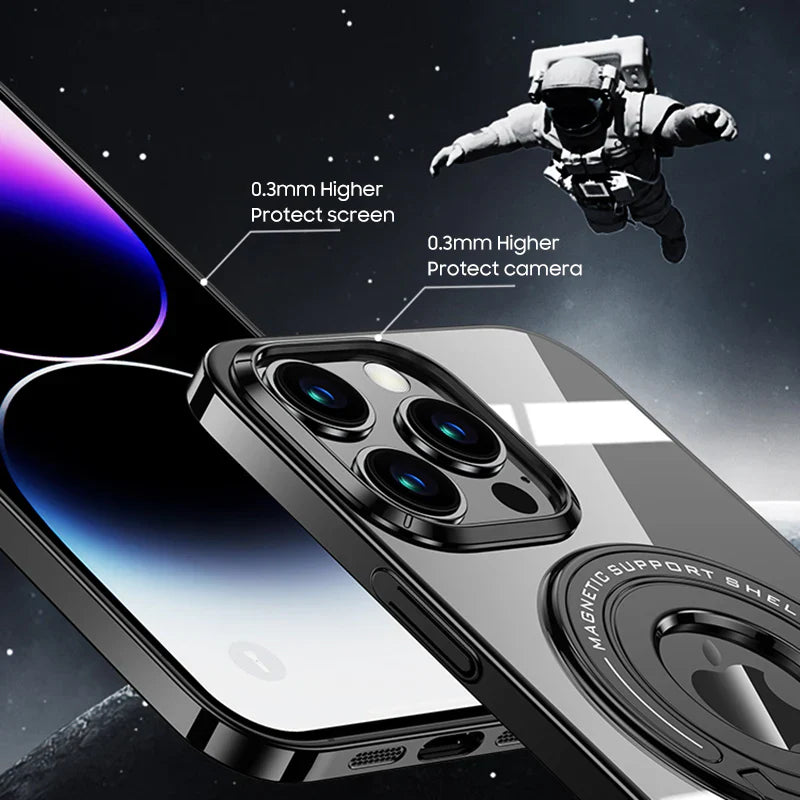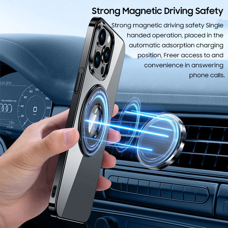 This electroplated clear case offers unbeatable protection and style. Featuring upgraded HD-transparent casing and the streamer electroplating process, four-corner shock-absorbing airbags ensure protection from drops, scuffs and scratches. Plus, enjoy the convenience of the MagSafe-enabled phone holder, consisting of 38 magnets, for a secure hold that lasts.