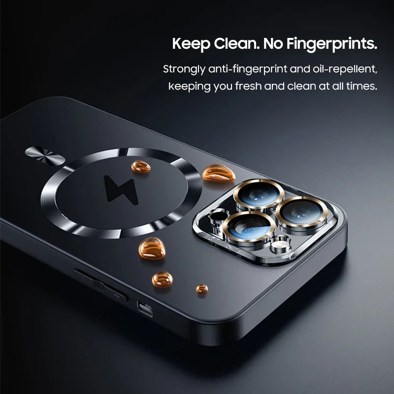 Made of 9H tempered glass and condensation-polymerized nano-ion matte, this case has enhanced protection and drop protection. The "Eagle Eye" lens film won't affect photos. Supports MagSafe charging with 38 magnetic beads for secure adsorption.